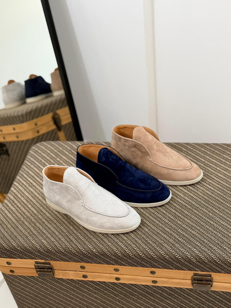 Classic Loro Piana ankle boots made from suede with a nappa calfskin interior. A patented opening with elastic hidden under the tongue guarantees an extremely comfortable fit. Perfect in formal or sportswear looks.