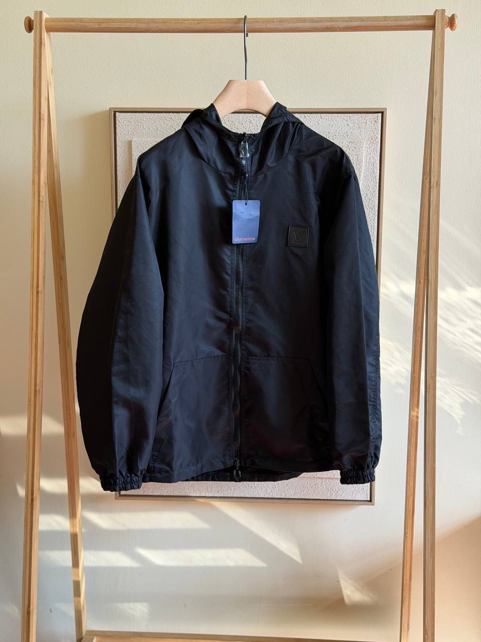 Made from water repellent technical fabric, this elegant reversible windbreaker has a plain matte side enhanced by a leather LV tab on the chest, while the other side features an allover tonal Monogram jacquard. This versatile piece for changeable weather is easy to wear and match, making it a perfect addition to any wardrobe.