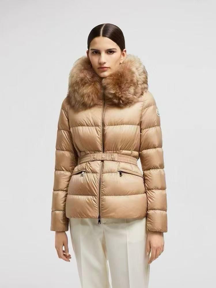 Stylish Moncler women’s jacket featuring a belted waist and plush fur-trimmed hood. Crafted for warmth, comfort, and an elegant winter look.