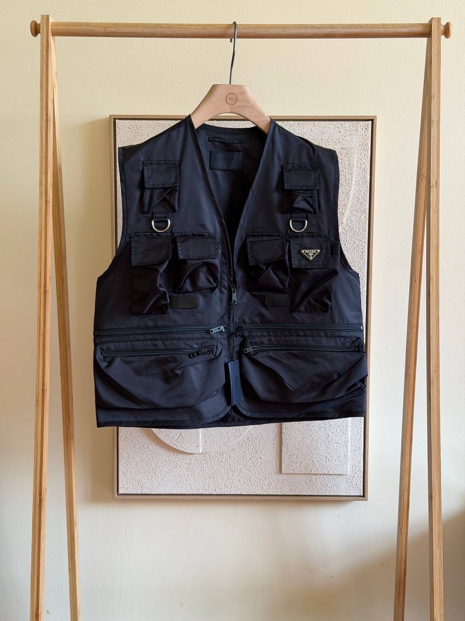 This black gilet is crafted from Prada's signature Re-Nylon fabric, made with regenerated nylon yarns sourced from ocean plastic. Boasting two large flap pockets to the chest, this utilitarian-inspired silhouette is instantly recognisable thanks to the familiar triangle logo.